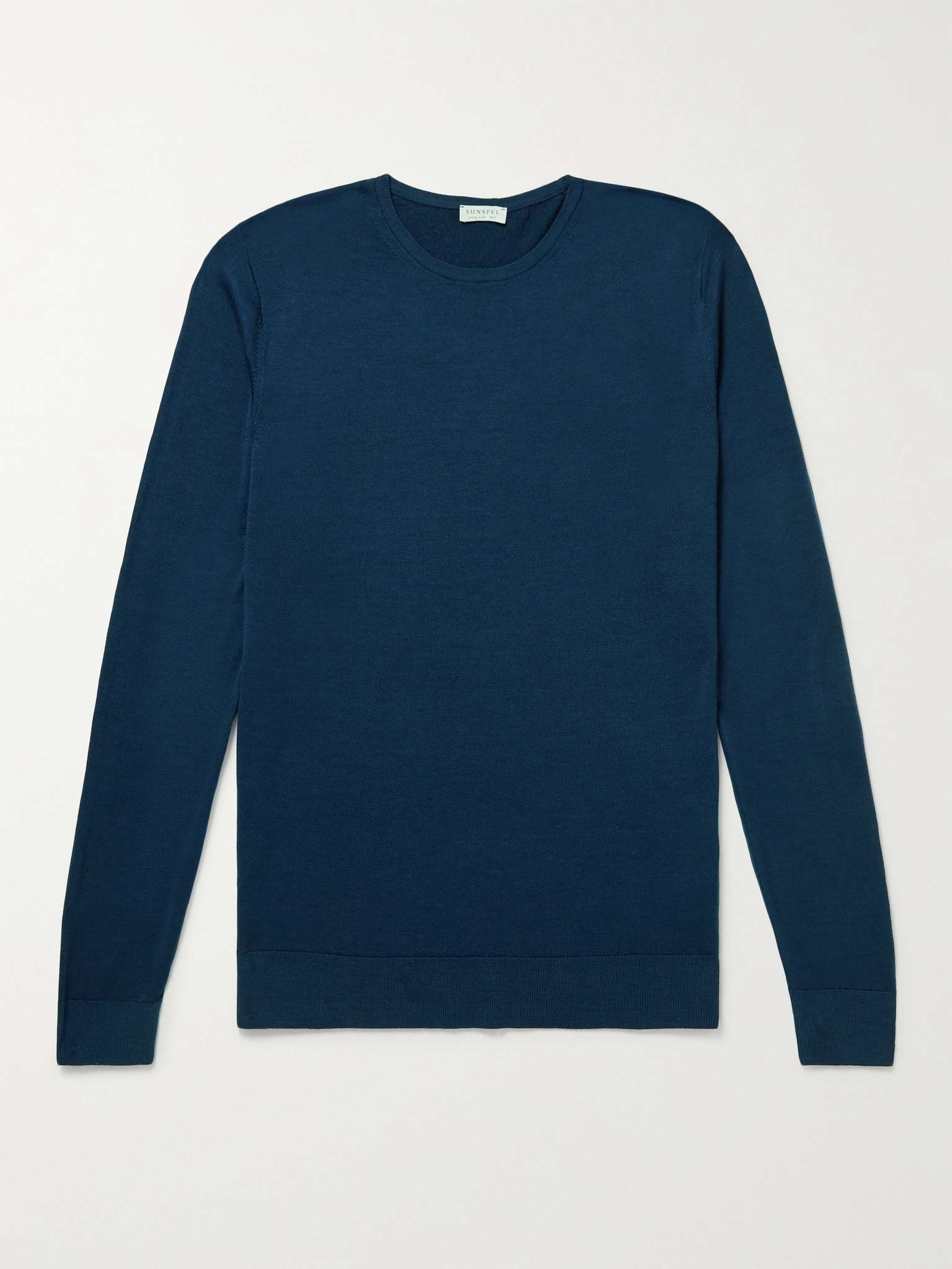 - Navy merino wool - Crew neck, ribbed trims - 100% merino wool - Machine wash - Designer colour: Marine Blue