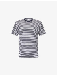 PRODUCT DETAILS - Sunspel cotton T-Shirt - 100% cotton - Pulls on - Crewneck, short sleeves, striped, ribbed trims - Machine wash mild - Model is 6ft 2in/1.88m and wears a size medium - Lightweight, slight stretch Ref: R04551880