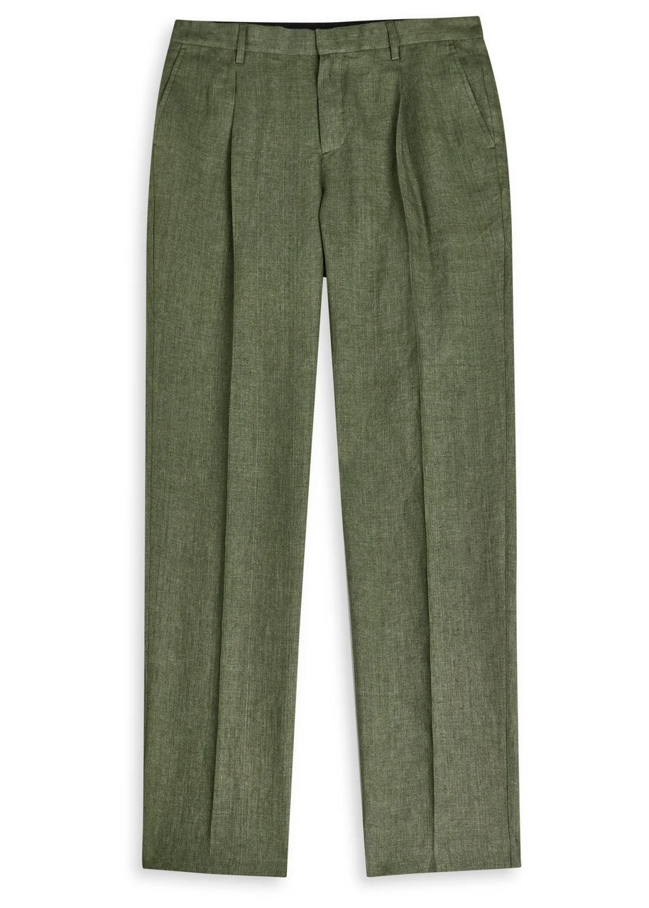 Info & Care Sunspel cotton trousers Belt loops, pleats at waist, side slip pockets, pressed crease through legs, button-fastening back slit pockets Concealed zip, hook and button fastenings at front 100% linen Dry clean Size & Fit Inside leg length: 31 inches/ 79cm Midweight Tapered-leg cut Model is 6'1"/ 185cm and wears a size medium