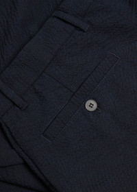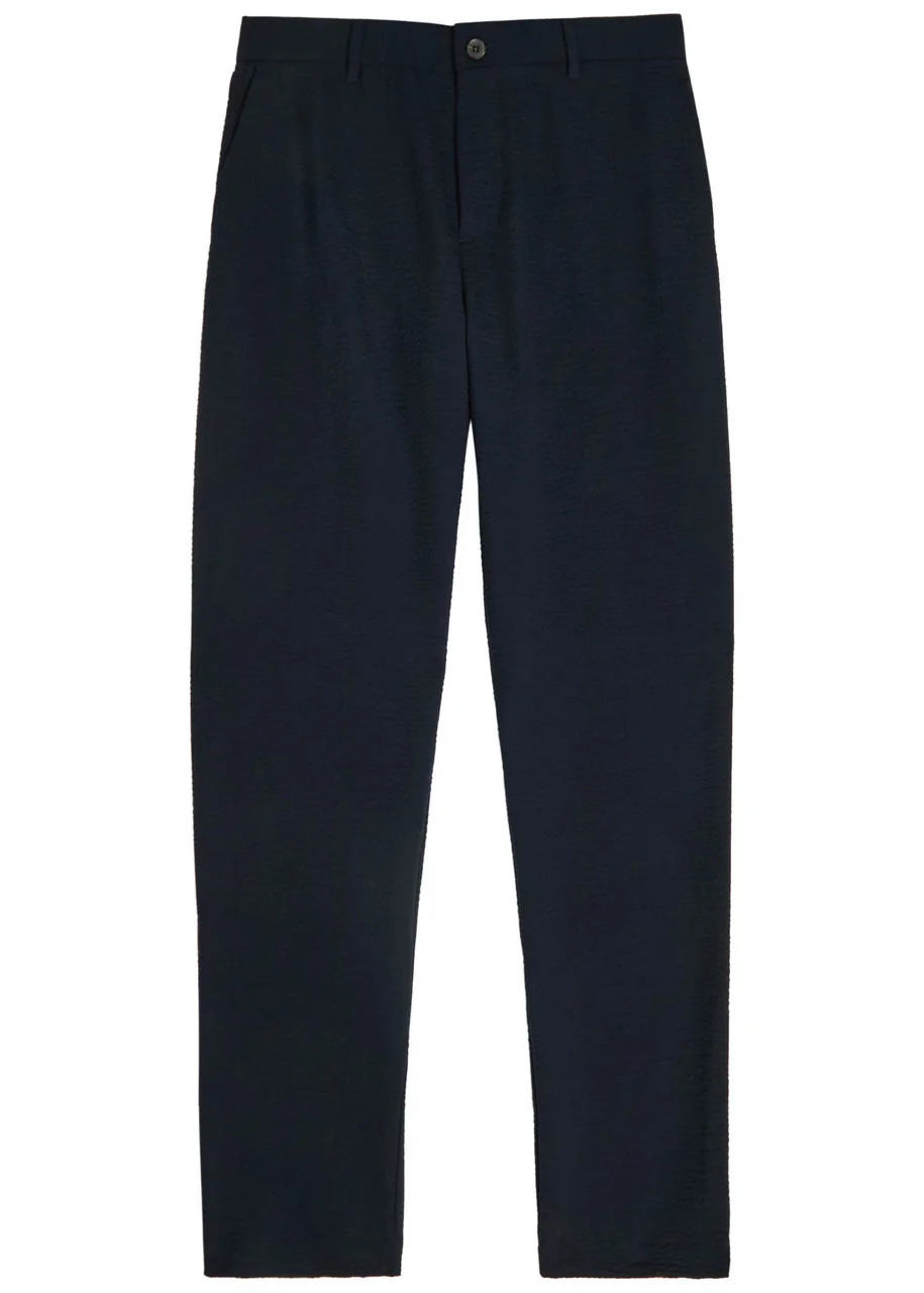 Info & Care Sunspel seersucker stretch-wool trousers Belt loops, side slip pockets, two button-fastening pockets at back Partially concealed button and zip fastening at front 97% wool, 3% elastane Dry clean Size & Fit Inside leg length: 32 inches/ 81cm Midweight Tapered-leg cut Model is 6'2"/ 188cm and wears a size;W32