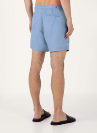 The classic Sunspel swim shorts are based on the iconic design worn by Sean Connery in Thunderball, and are now available in an upcycled marine plastic from SEAQUAL®, made from waste plastic recovered from the oceans. The shorts come in a range of solid tones and prints, with Sunspel branded press studs and adjustable side tab, and are finished with a quick dry surface. A pair of swimming shorts that help clean the seas. Product Code: MSHR3704-BUWB Fabric & Care - 70% Seaqual™, 30% Recycled Polyester - Product partly made from upcycled marine plastics - Gentle wash at 30°C with similar colours - Do not tumble dry - Dry cleanable - Made in Portugal Size & Fit - 6.5" Inside leg - Adjustable waist - Model is 6'1" and wears a size M