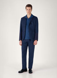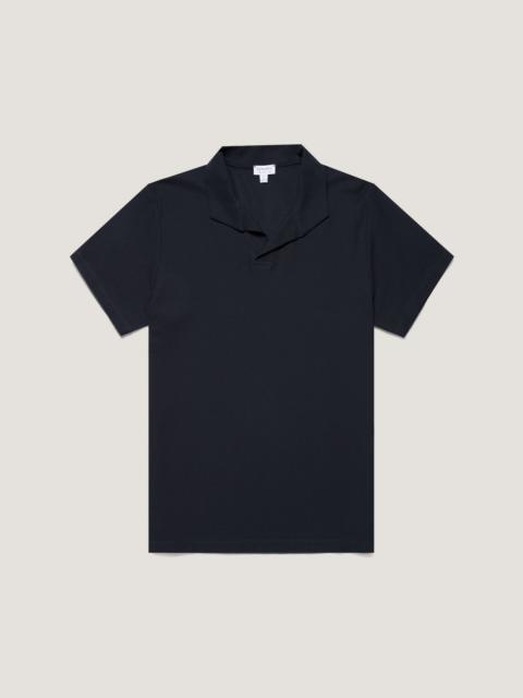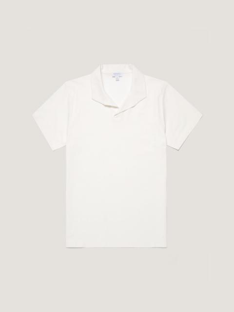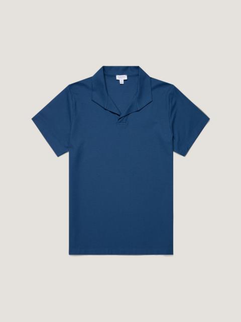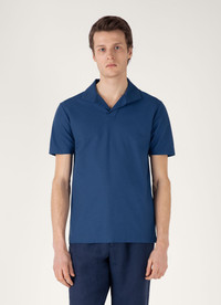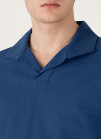 A smart, elegant polo crafted from refined Italian textured jersey, inspired by mesh fabrics in our archive. Lightweight and soft, it has a regular fit, side slits, and an open, buttonless collar. A perfect piece for holiday evenings, dressed up or down. Product Code: MPOL1074-BUWC Fabric & Care - 100% Cotton - Gentle wash at 30°C - Do not tumble dry - Dry cleanable - Made in Portugal Size & Fit - Regular fit - Model is 6'1", chest 36" and wears a size M