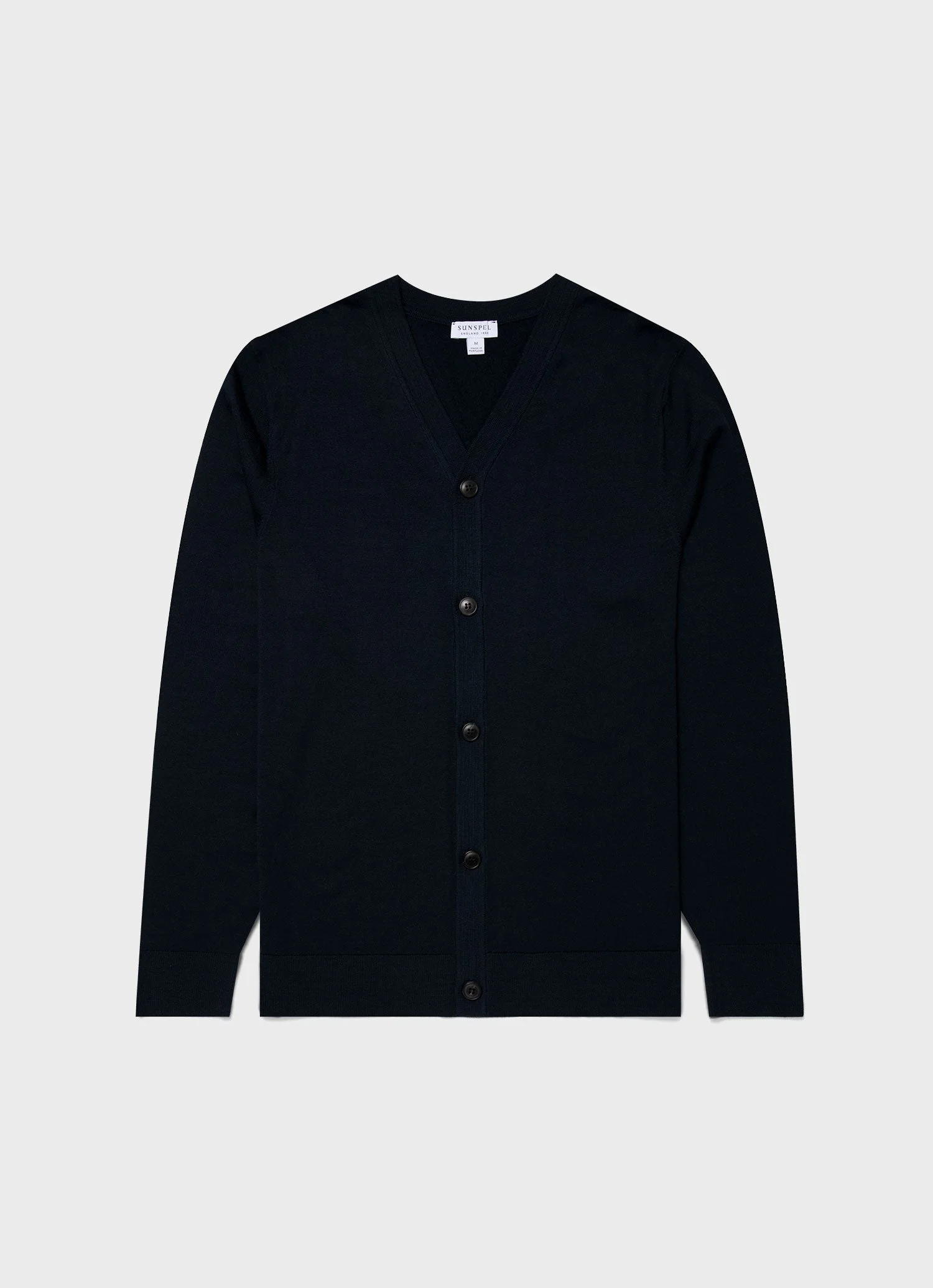 Crafted from extra-fine merino wool, this cardigan is luxuriously lightweight and exceptionally soft, with a high-neck drop and tubular seam finish that gives it a refined contemporary silhouette. It's a perfect layer for transitional dressing, offering warmth without weight and seamlessly fitting into any wardrobe. Product Code: MCAR8223-BUAF Fabric & Care - 100% Extra-Fine Merino Wool - Non-mulesed - Total Easy Care (TEC) treatment applied for machine washability and shrink resistance - Horn buttons - Gentle wash at 30°C - Do not tumble dry - Dry cleanable - Made in Portugal Size & Fit - Regular fit - Model is 6'1", chest 39" and wears a size M