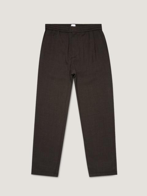 Crafted from unique textured wool sourced from a specialist Italian mill, this trouser blends comfort with a refined, tailored feel. Designed with an easy straight leg, slanted side pockets, and a drawstring waistband with a functional fly, it offers a relaxed yet polished silhouette. Product Code: MTRS3120-BRGD Fabric & Care - 99% Wool, 1% Elastane - Horn buttons - Do not tumble dry - Dry clean only - Made in Portugal Size & Fit - Regular fit - Straight leg - Drawstring waist - Model is 6'3" and wears a size M