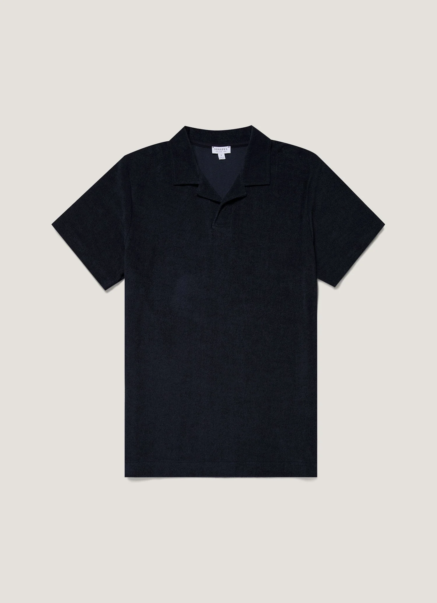 A summer polo shirt in a super-soft organic cotton towelling that's lightweight and breathable. With a clean open placket and buttonless collar, it's both smart and contemporary. The ultimate holiday essential. Product Code: MPOL1574-BUAA Fabric & Care - 100% Cotton - Gentle wash at 30°C with similar colours - Do not tumble dry - Do not dry clean - Made in Portugal Size & Fit - Regular fit - Model is 6'1", chest 37.5" and wears a size M
