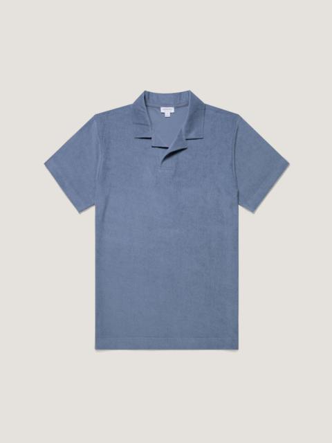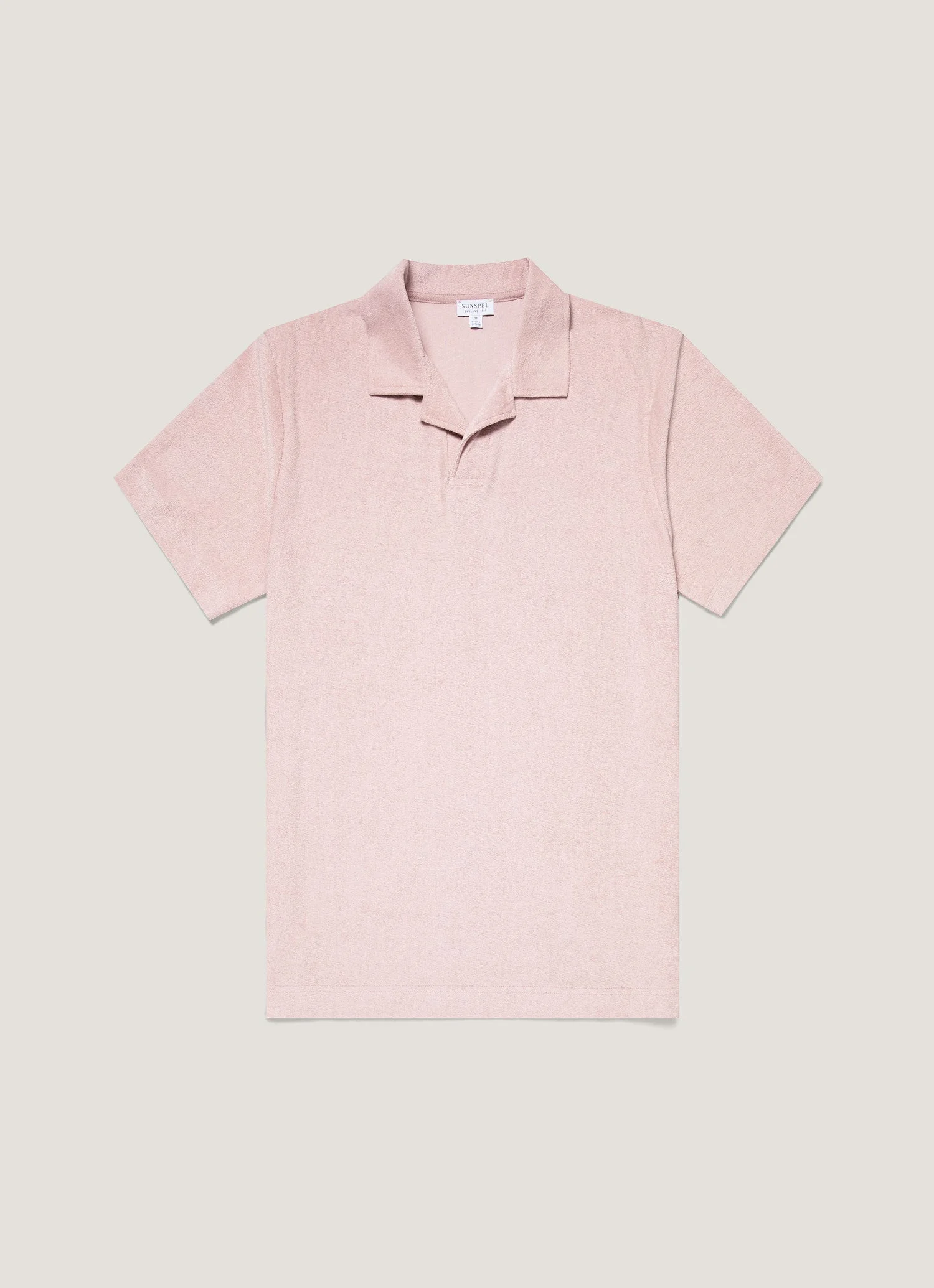 A summer polo shirt in a super-soft organic cotton towelling that's lightweight and breathable. With a clean open placket and buttonless collar, it's both smart and contemporary. The ultimate holiday essential. Product Code: MPOL1574-PKBJ Fabric & Care - 100% Cotton - Gentle wash at 30°C with similar colours - Do not tumble dry - Do not dry clean - Made in Portugal Size & Fit - Regular fit - Model is 6'1", chest 37.5" and wears a size M