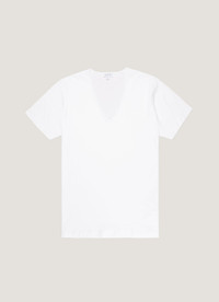 This V-neck T-shirt is crafted from a long-staple cotton jersey that’s luxuriously soft and lightweight. It has a regular body fit and is based on our crew neck underwear T-shirt. A warm, comfortable base layer that can be worn under jumpers and shirts or casually when lounging at home. Product Code: MTSH4102-WHAA Fabric & Care - 100% Cotton - Gentle wash at 40°C - Do not tumble dry - Dry cleanable - Made in Portugal Size & Fit - Regular fit - Model is 6'2", chest 39" and wears a size M