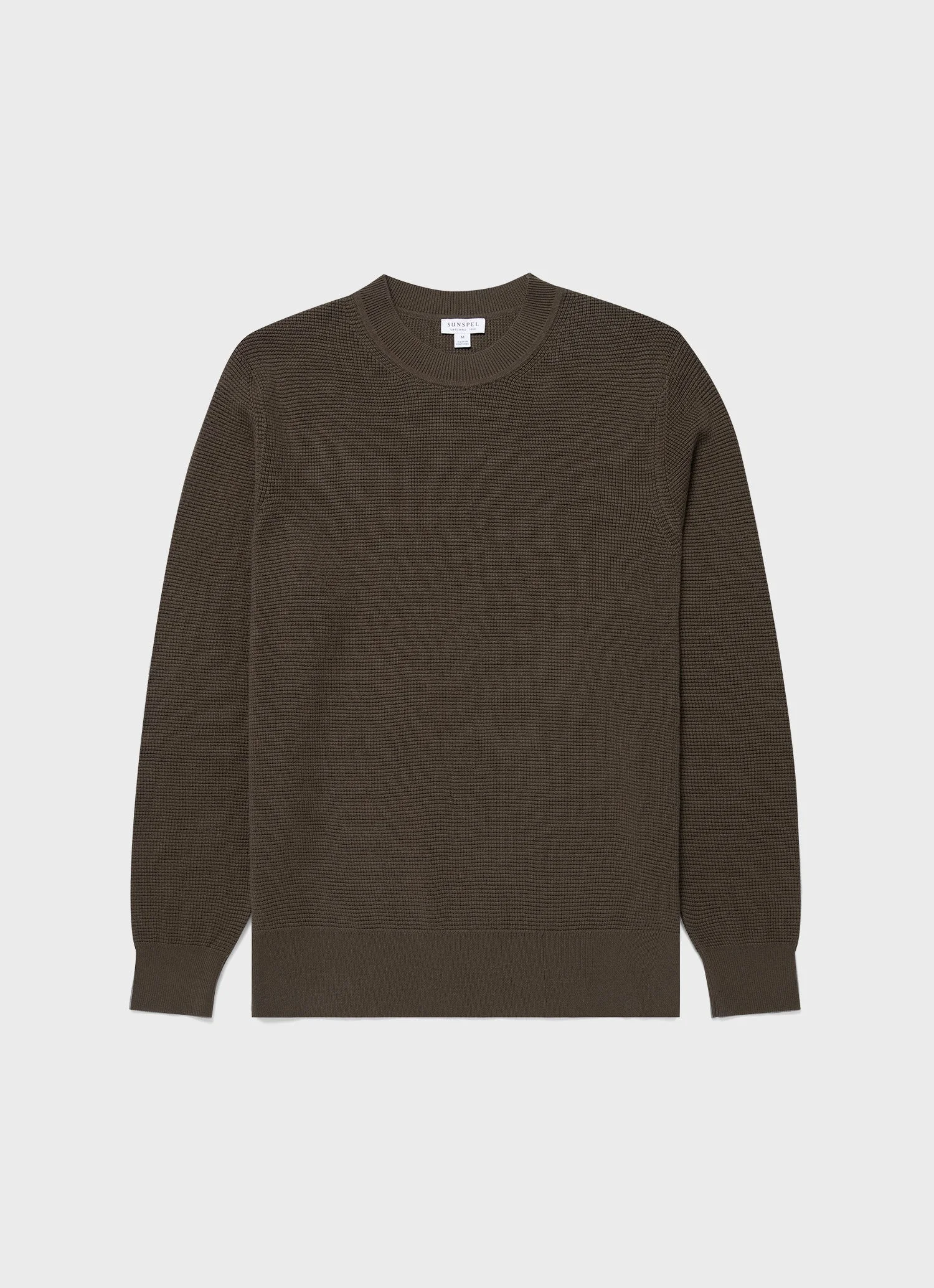 A transeasonal crew neck crafted in a waffle stitch knit made from the finest Egyptian long staple cotton. The slight texture makes it soft and smooth and it has ribbed cuffs and hems. A versatile knit, perfect for layering over a T-shirt or under a jacket. Product Code: MJUM8231-GNGY Fabric & Care - 100% Cotton - Gentle wash at 30°C with similar colours - Do not tumble dry - Dry cleanable - Made in Portugal Size & Fit - Click here to view size chart - Fits true to size - take your normal size - Regular Fit - Model is 6'1" and wears a size Medium