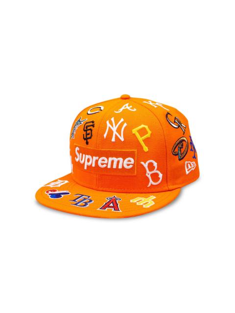 Supreme x New Era's $1M cap features metallic logo embroideries on the front, back and sides. Finished in purple, the wool cap released as part of the NYC brand's SS20 collection.
