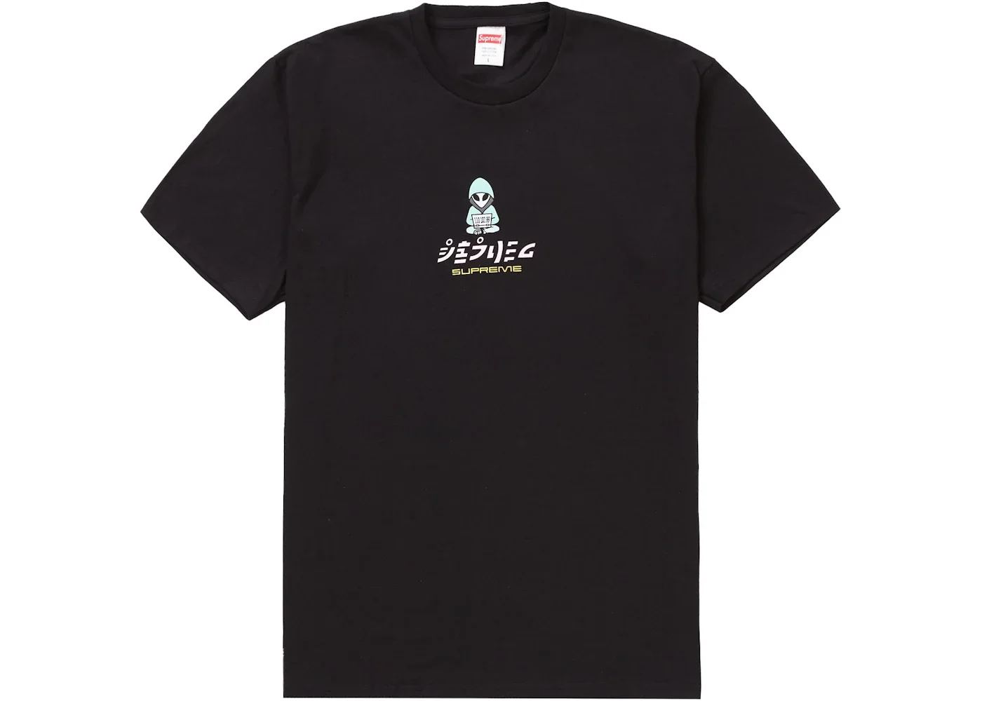 The Supreme Alien Tee Black is a black colorway T-shirt by Supreme that is made of breathable 100% cotton fabric. The Supreme Alien Tee Black is made of breathable and skin-friendly 100% cotton fabric. It has a crew neck that has a closed seam. The neck also has a frontal drop. The t-shirt features open sleeves to help you move freely. The company label at the inner back neck features a red Supreme logo on a white background. There’s also the Supreme Alien logo in the tee’s chest written in Chinese. The Supreme Alien Tee Black was released on 14th April 2022. Supreme released this tee at a retail price of $40. - Season SS22 - Color Black - Release Date 2022-04-14 - Retail Price 40 - Featured false