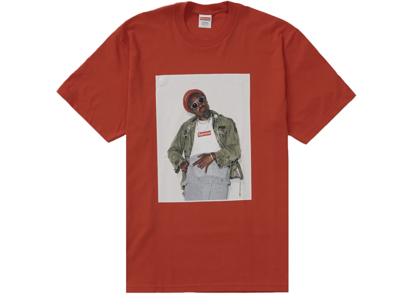 The Supreme Andre 3000 Tee Tomato is made of cotton fabric material, making them hypoallergenic, breathable, naturally sustainable, absorbent, and comfortable to wear. It is available in small, medium, large, and extra-large sizes. The tee will especially be a marvel for musician and actor Andre Benjamin fans thanks to the printed graphic of the artist's image displayed on the front of the T-shirt. Released in August of 2022, the Supreme Andre 3000 Tee Tomato was an addition to the Supreme T-shirts array. This item originally retailed for $54 and is a fit option for hip-hop lovers and skateboarders. - Season FW22 - Color Tomato - Release Date 2022-08-25 - Retail Price 54 - Featured false
