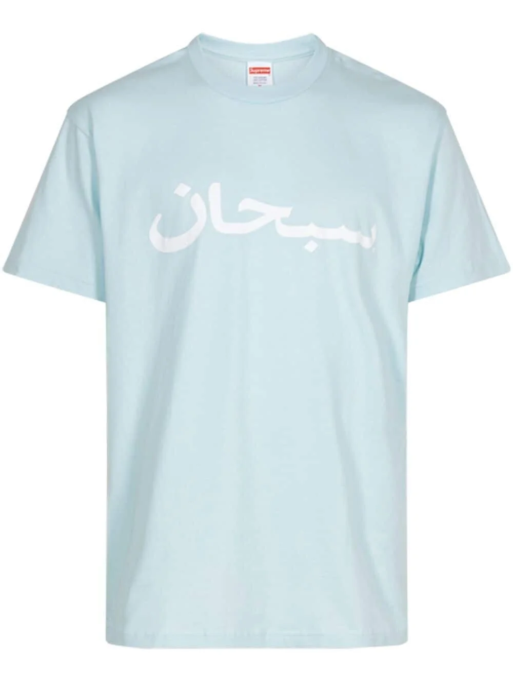 Arabic Logo "Pale Blue" T-shirt Supreme's logo is reinvented in this Arabic Logo cotton T-shirt from the brand's SS23 collection. The signature detail appears in white, at the chest, contrasting with its 'Pale Blue' colourway. Highlights - Light blue - Cotton - Logo print at the chest - Crew neck - Short sleeves - Straight hem - When buying this unisex item, keep in mind that it is graded in standard men's sizing. Imported Composition Cotton 100%