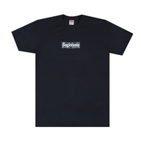 Supreme's signature box logo is set within a bandana print on the front of this tee from FW19. Made from cotton, the short-sleeve shirt is designed in navy and topped with a crewneck.