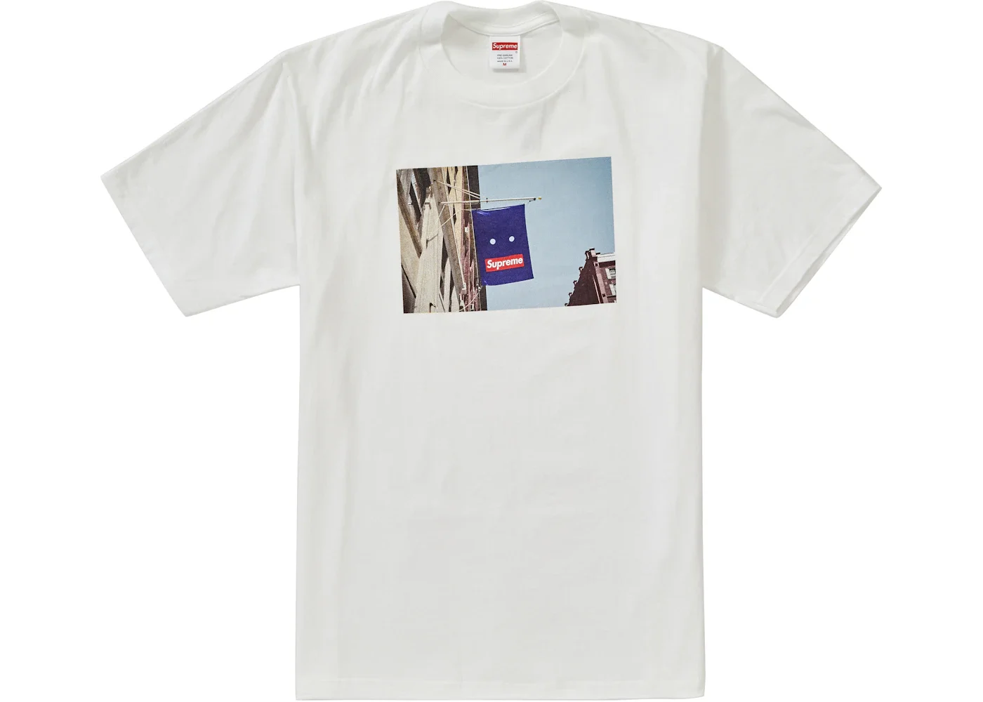 Released as a part of Supreme's Fall/ Winter 2019 Week 1 drop, the Supreme Banner tee sold out in a near instant. The tees dropped in nine different colorways and all feature the same graphic image, a landscape photograph of Supreme's original store banner. The Supreme Banner Tee released on August 22nd, 2019 and retailed for $38 USD. - Season FW19 - Color White - Release Date 2019-08-22 - Retail Price 38 - Featured false