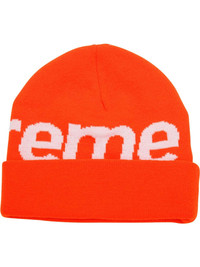 big logo beanie Supreme's cool beanies are back for the spring-summer 2021 collection. As per usual, the American skateboarding lifestyle brand has put together a bold orange colour with a big intarsia-knit logo all over it. Made in United States Composition Cotton 100% Washing instructions Machine Wash