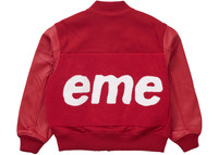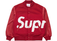 The Supreme Big Logo Chenille Varsity Jacket Red features a wool blend body with cowhide leather sleeves and a quilted satin lining in a classic varsity-style silhouette, with a monochrome red color palette. Details include snap closure, welt leather pockets, an interior chest pocket, and ribbed knit trim at the collar, hem, and cuffs. A panel of red chenille with the Supreme logo in white is bisected across the front and back. Supreme, iconic purveyor or skateboarding gear and streetwear since 1994, has always been known for its collaborations. For the Chenille Varsity Jacket, Supreme collaborated with Cactus Plant, of Cactus Plant Flea Market, a brand known for limited run collections that sell out instantly, which mirrors the response to Supreme’s biannual collections. In our opinion, the best feature of the Big Logo Varsity Jacket is the chenille logo, which recalls and expands upon the traditional texture of varsity letters. The Supreme Big Logo Chenille Varsity Jacket Red released on February 15, 2024, and retailed at $568. - Season SS24 - Color Red - Release Date 2024-02-15 - Retail Price 568 - Featured false - Requester Kelsey K - Uploaded By LL