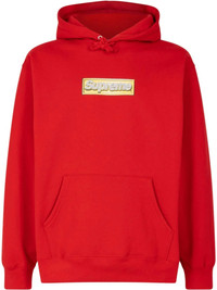 Bling Box Logo hoodie The Supreme Bling Box Logo hoodie in red is an all-cotton hooded sweatshirt by the 'World Famous' streetwear brand that features its iconic Box Logo in a fun design. The piece is highlighted by a 'bling' style Box Logo on the chest remembering late ‘90s and early 2000s hip-hop culture. Made in United States Composition Cotton 100%