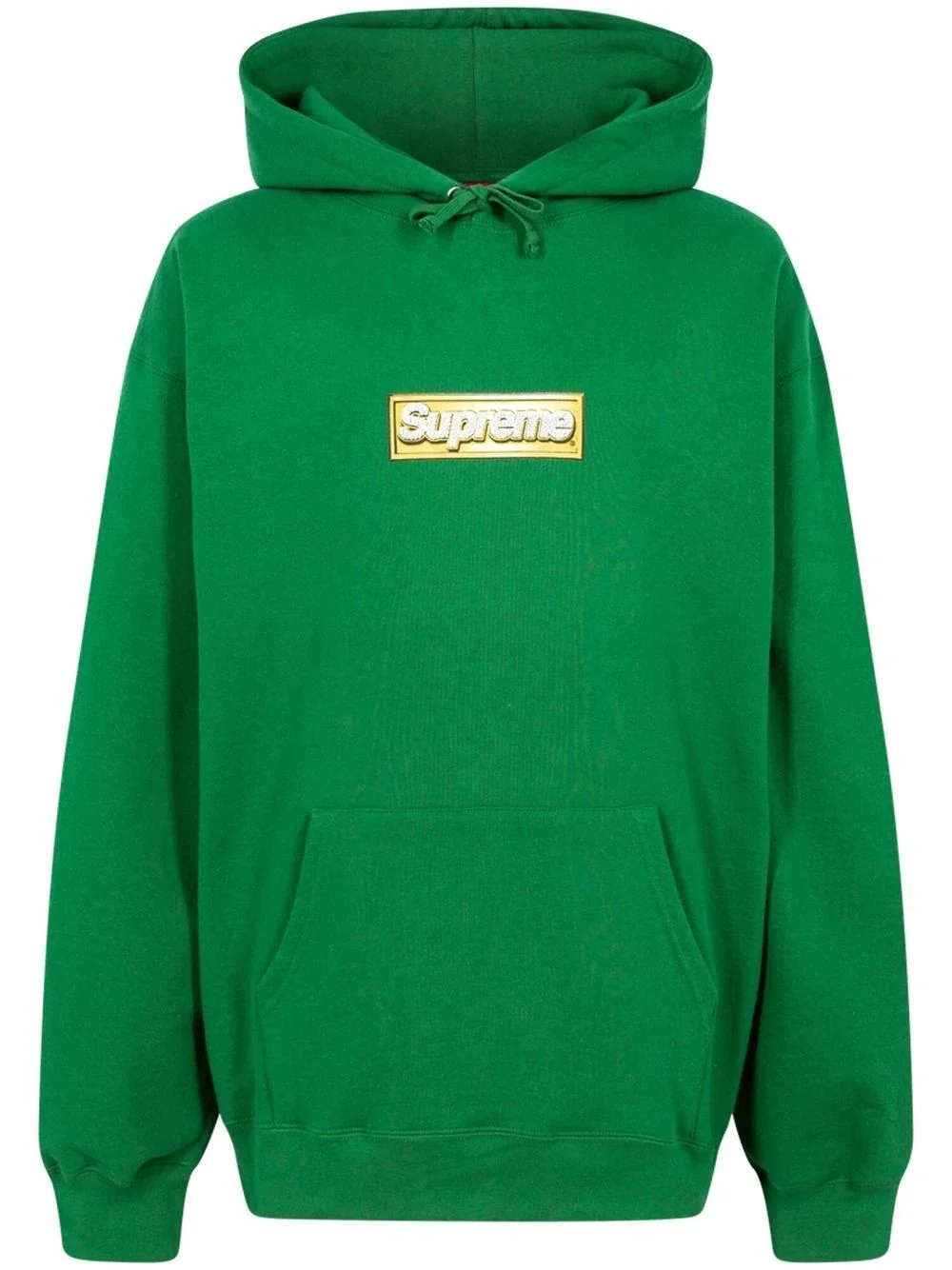 Bling Box Logo drawstring hoodie The Supreme Bling Box Logo hoodie in green is an all-cotton hooded sweatshirt by the 'World Famous' streetwear brand that features its iconic Box Logo in a fun design. The piece is highlighted by a 'bling' style Box Logo on the chest remembering late ‘90s and early 2000s hip-hop culture. Made in United States Composition Cotton 100%