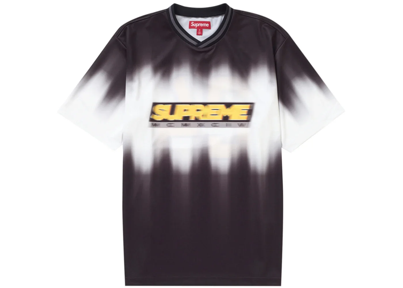 The Supreme Blur Soccer Jersey in black offers a modern, edgy twist on classic soccer style, featuring a bold, blurred graphic print that adds a dynamic touch to the traditional black jersey. This jersey is a must-have for anyone looking to elevate their game. The Black Supreme Blur Soccer Jersey features a striking, blurred graphic print that redefines the classic soccer jersey aesthetic. With its polyester blend construction, this jersey offers a lightweight and breathable jersey ideal for high-intensity activities. The bold, modern design elements combine to create a unique and captivating visual effect, setting this jersey apart from the rest. What we appreciate the most about the Supreme Blur Soccer Jersey in black is the innovative blurred graphic print, which adds a mesmerizing visual effect to the classic design. The jersey's tailored silhouette and strategically placed stretch zones allow for unrestricted movement, perfectly balancing form and function. When this jersey was released on February 15, 2024, its retail price was $98. - Season SS24 - Color Black - Release Date 2024-02-15 - Retail Price 98 - Featured false - Requester Kelsey K - Uploaded By LL