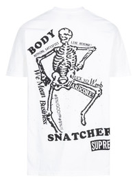 Body Snatchers "White" T-shirt Showing the brand's focus on quality and unique designs, the Body Snatchers T-shirt from Supreme features an all-cotton construction highlighted with a signature box logo on the chest in black. Its all-white design stands out thanks to the skeleton print on the back in reference to 'Hardcore' music. Highlights - White - Cotton - Signature box logo - Skeleton print - Crew neck - Short sleeves - Straight hem - When buying this unisex item, keep in mind that it is graded in standard men's sizing. Made in United States Composition Cotton 100%