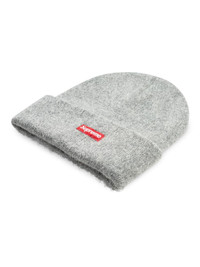 box logo beanie Knitted to a mélange effect, this grey Supreme beanie boasts a simple, classic silhouette spotlighting the brand's signature box logo, a red rectangle with white lettering that is instantly recognisable. Highlights - Heather grey - Knitted construction - Mã©lange effect - Signature box logo - Turn-up brim - Round crown Imported Composition Mohair 100%