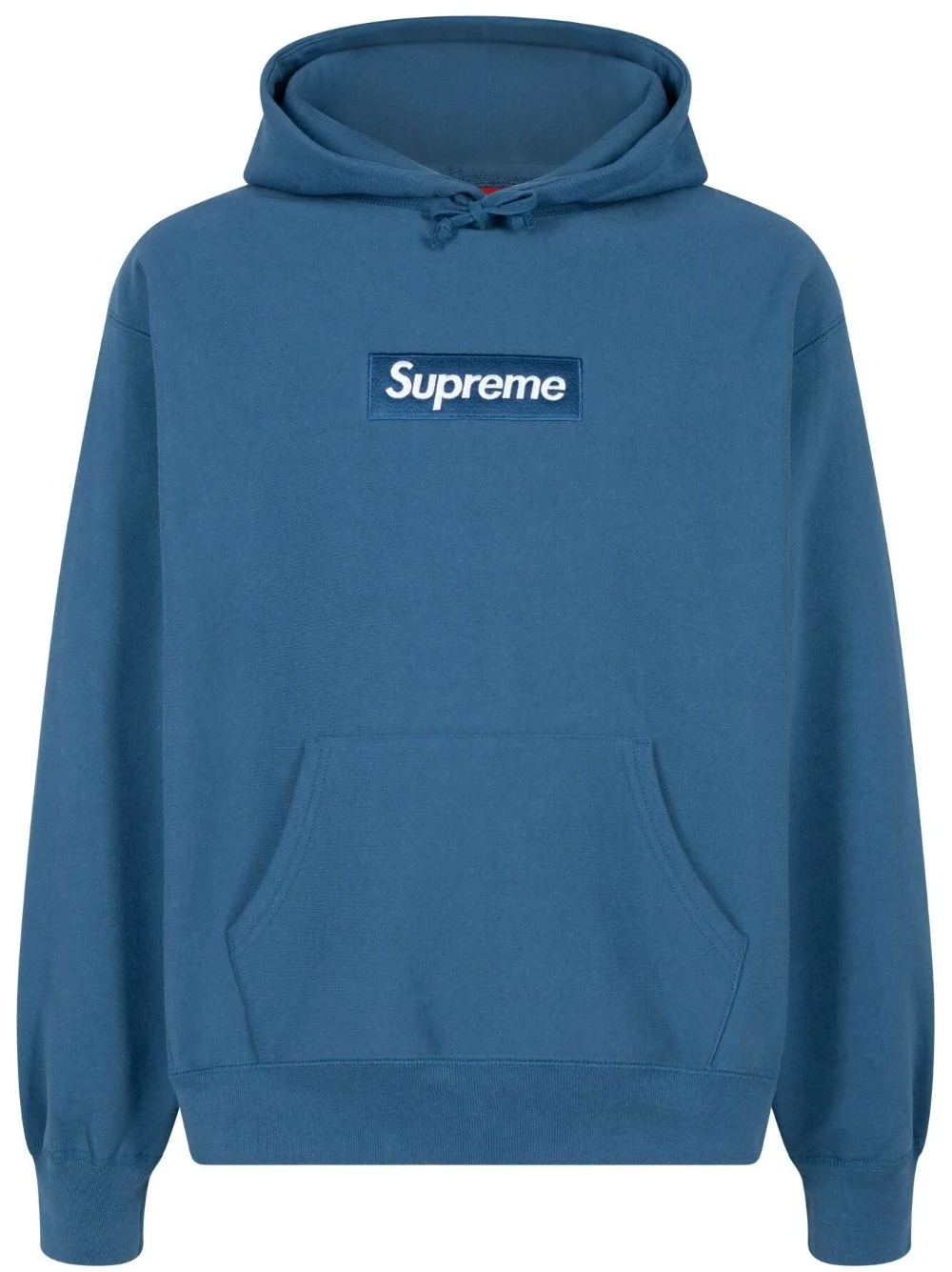 box logo cotton hoodie The story of Supreme's box logo begins in 1994 when founder James Jebbia opened the shop's doors in New York City. A line of T-shirts was released to coincide with the launch, for which the iconic symbol featuring white lettering inside a rectangular red box was designed. Since then, it has cemented itself in popular culture and now features across a range of different pieces. A case in point, this prussian-blue hoodie is made from cotton to a relaxed silhouette adorned with a tonal version of the emblem. Highlights - Prussian blue - Cotton - Signature box logo - Drawstring hood - Drop shoulder - Long sleeves - Front pouch pocket - Ribbed cuffs and hem - When buying this unisex item, keep in mind that it is graded in standard men's sizing. Imported Composition Cotton 100% Washing instructions Read Manufacturer Guidelines
