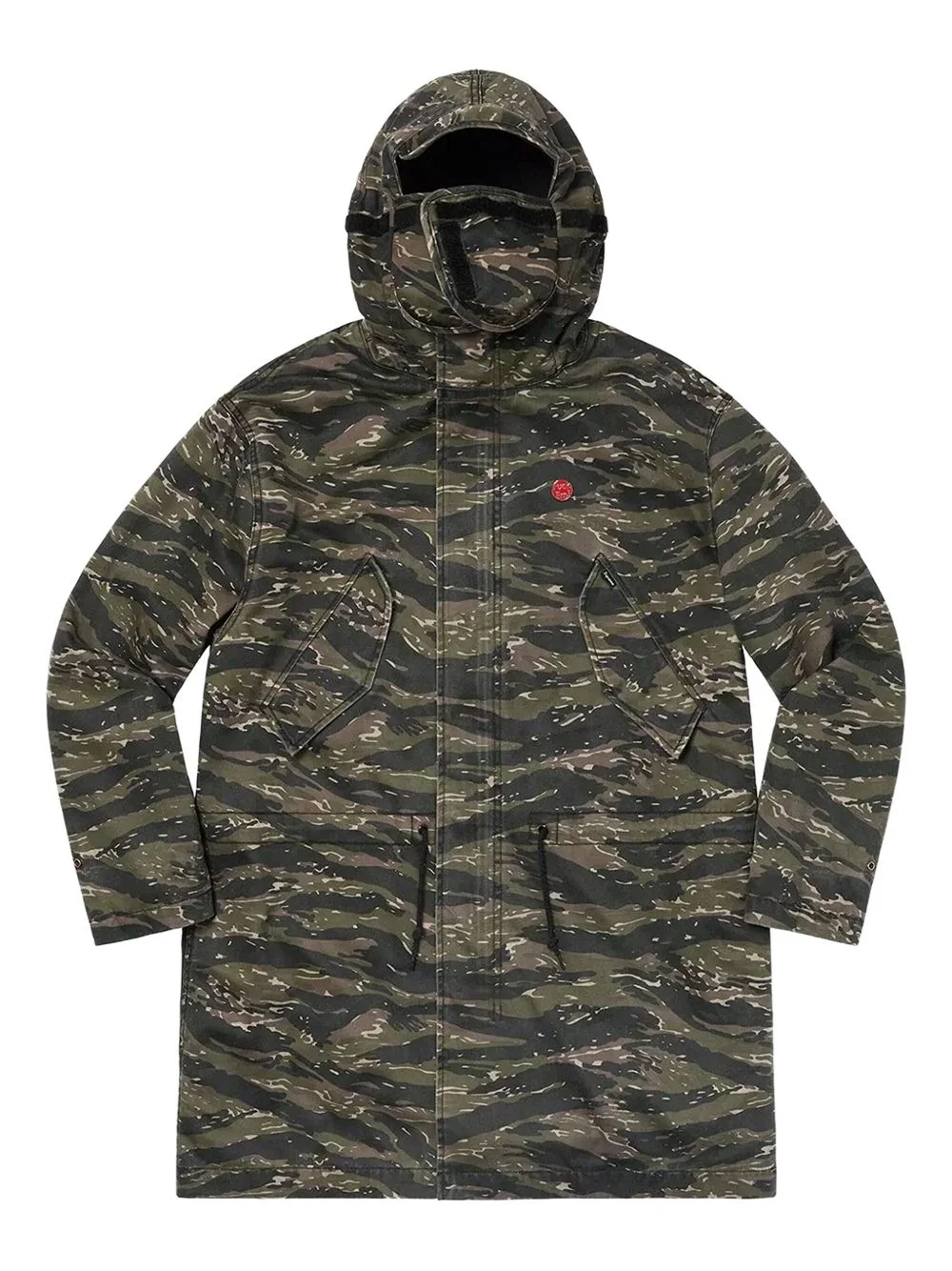camouflage-pattern tiger-print parka coat Highlights - Green/brown - Tiger stripe print - Camouflage pattern - Classic hood - Face mask detail - Front zip-fastening pockets - Front zip fastening Imported Composition Outer: Cotton 100% Lining: Cotton 100% Washing instructions Read Manufacturer Guidelines