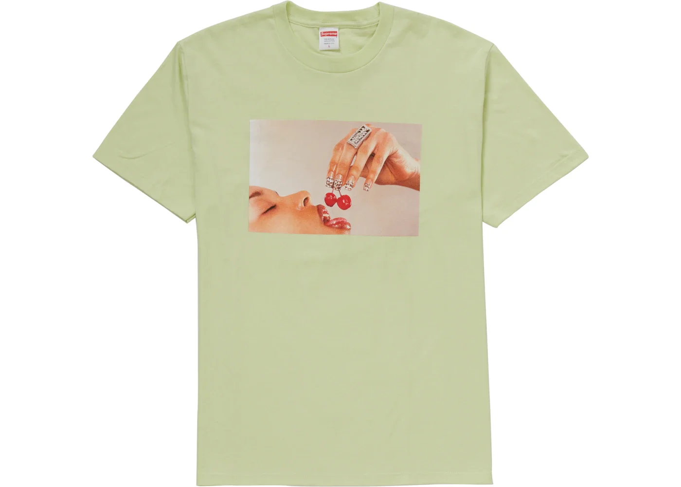 Supreme released an assortment of more than ten different tees as a part of their SS20 Week One release. The Supreme Cherries Tee features an image crop of a woman seductively eating cherries. The tee was released in nine colors. The Supreme Cherries Tee released on February 20th, 2020, and retailed for $38 USD. - Season SS20 - Color Pale Mint - Release Date 2020-02-20 - Retail Price 38 - Featured false