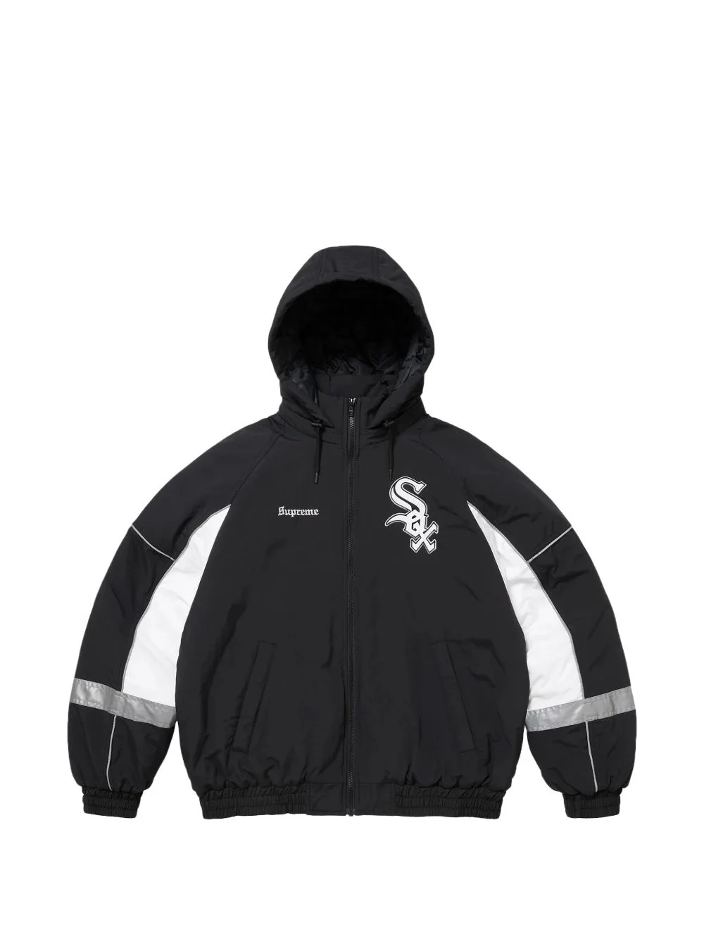 Chicago White Sox hooded stadium jacket Highlights - Black/white - Hooded - Reflective detailing - Zip fastening - Long sleeves - Elasticated hem Imported Composition Fabric 100% Washing instructions Read Manufacturer Guidelines
