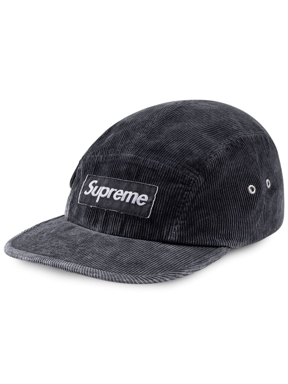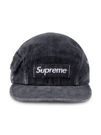 corduroy pocket camp cap Highlights - Black - Cotton - Corduroy - Eyelet detailing - Signature box logo - Side flap pocket - Flat peak - Adjustable strap to the rear Made in United States Composition Cotton 100%