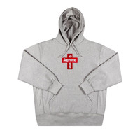 Supreme Cross Box Logo Hooded Sweatshirt 'Heather Grey'