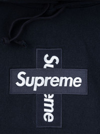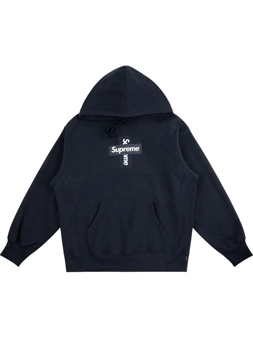 Cross Box Logo hoodie This navySupreme Box Logo Hoodie was made available on December 3rd, 2020, and feature's the brand's new Cross Box Logo design. Never before has Supreme released a Box Logo Quite like this. This hoodie actually features two box logos, meaning that if you get your hands on one, it's basically two for the price of one. Made in United States Composition Cotton 100% Washing instructions Machine Wash