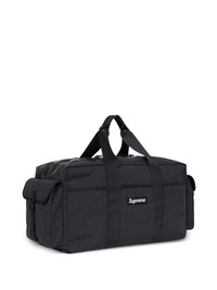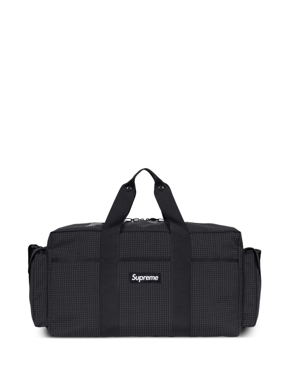 logo-patch duffle bag Highlights - Black - Two-way zip fastening - Logo patch to the front - Fine check pattern - Two rolled top handles - Two side flap pockets - Main compartment Imported Composition Outer: Fabric 100%