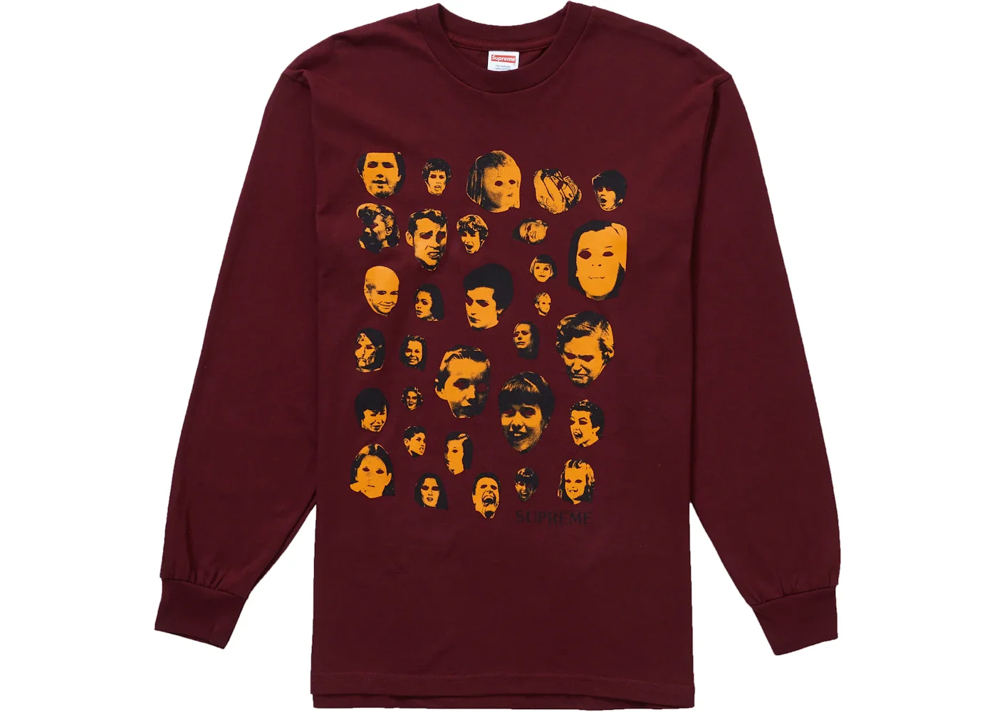 Released as a part of Supreme's Fall/Winter 2019 Week 1 drop, the Supreme Faces L/S Tee was one of the most eye-catching tees of the season. The tee dropped in eight different colorways and features multiple faces all over the front with their eyes cut out. The Supreme Faces L/S Tee released on August 22nd, 2019 and retailed for $40 USD. - Season FW19 - Color Burgundy - Release Date 2019-08-22 - Retail Price 40 - Featured false