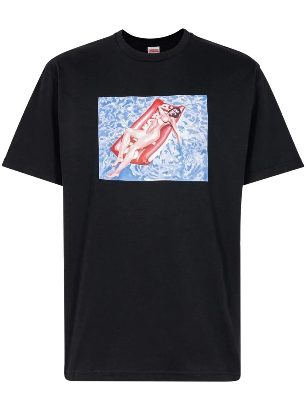 Float Tee sneakers Following the brand's casual yet bold style, this black short-sleeve T-shirt from Supreme's AW22 collection is highlighted with a print of a woman floating in a pool, on the front. Its design is crafted from cotton and features a straight, relaxed cut. Imported Composition Cotton 100%