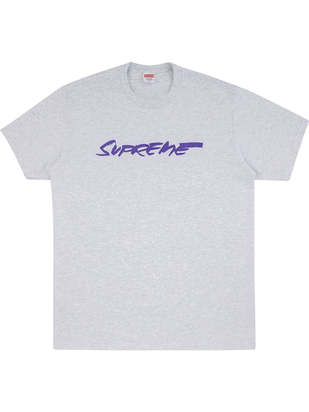 Grey cotton Futura logo T-shirt from SUPREME featuring round neck, short sleeves, graphic print and slim fit. Highlights - Grey - Cotton - Round neck - Short sleeves - Graphic print - Slim fit Made in United States Composition Cotton 100%