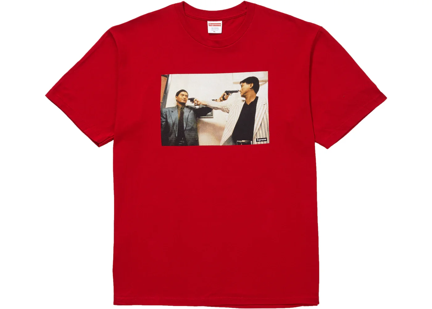 The Supreme The Killer Trust Tee Red is a bright red short-sleeved tee shirt that pays homage to the movie The Killer that was directed by John Woo in 1989. Debuting as part of Supreme’s fall/winter 2018 capsule that featured other items with "The Killer" imagery, this shirt is dressed in Supreme’s classic red tone for its base. On the front of the all-cotton Red Supreme The Killer Trust Tee is a print screen image from the movie featuring two of the characters pointing guns at each other, while a Supreme monogram logo appears in the bottom left. The shirt has straight hems and a crew neck. The main element of this tee has to be the quote on the back of the shirt that references not being able to trust anyone when they are in the business of killing. The Supreme The Killer Trust Tee Red had a $48 price tag when it was released on October 25, 2018. - Season FW18 - Color Red - Release Date 2018-10-25 - Retail Price 48 - Featured false
