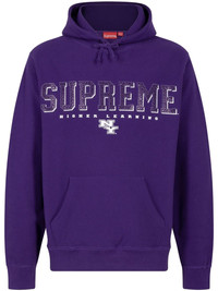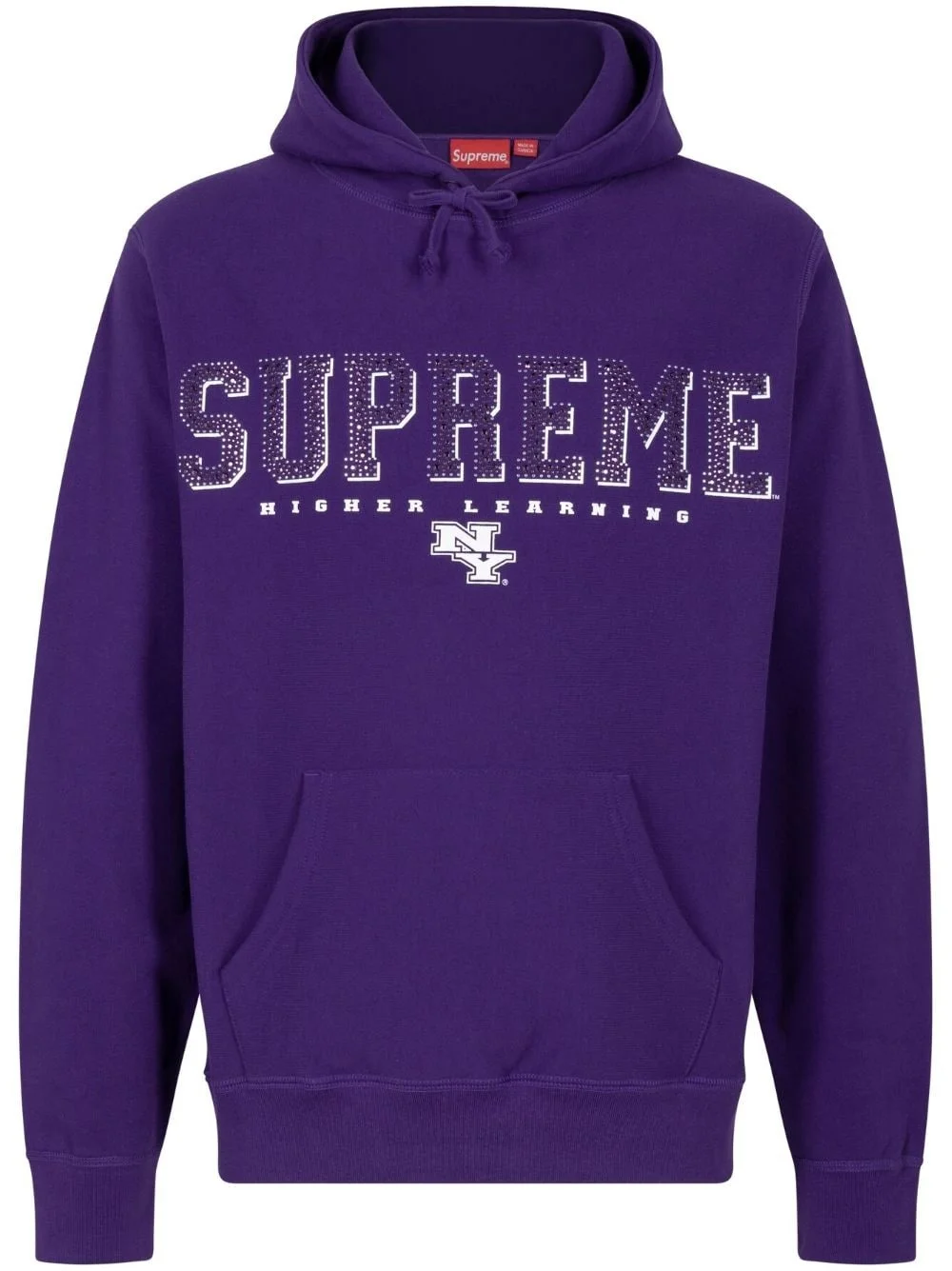Gems crystal-embellished hoodie Supreme's cotton hoodie is detailed with crystal-embellished logo lettering on the front. Highlights - Purple - Cotton - Crystal embellishment - Logo print to the front - Drawstring hood - Long sleeves - Front pouch pocket Imported Composition Cotton 100%