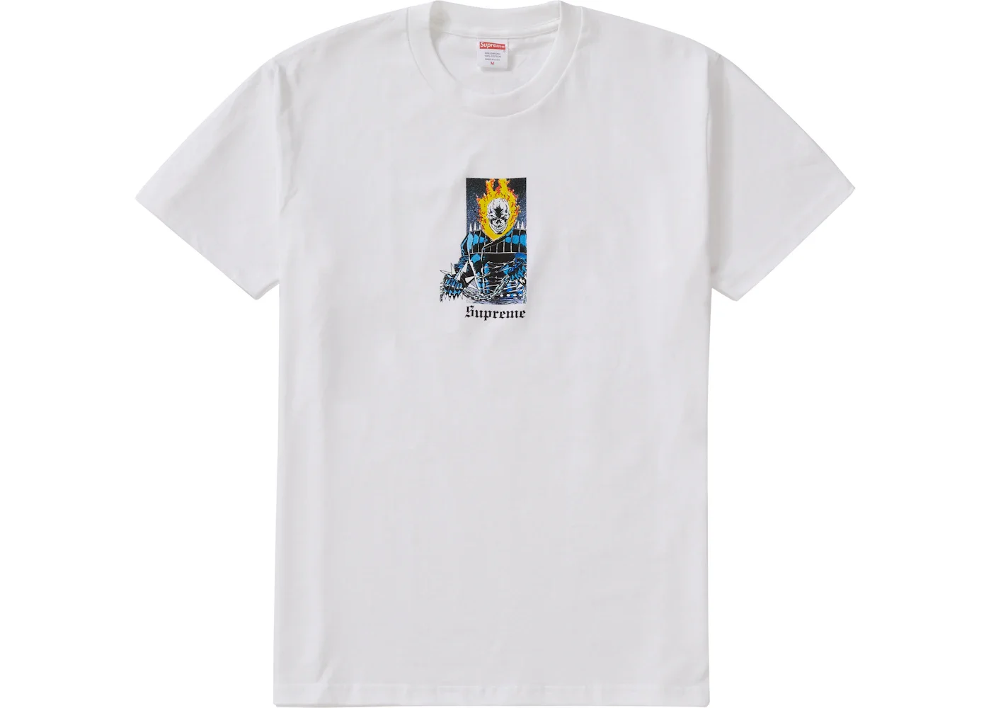 Supreme's Ghost Rider Tee was one of two tees released in Week 6 that referenced other items dropped earlier in the Spring/Summer 19 season. In Week 2, Supreme dropped several Ghost Rider themed items, including two jackets that retailed for $1598 USD. The tee presents a far more financially viable option for all those Ghost Rider fans out there. The Ghost Rider Tee released on April 4th, 2019 and retailed at $38 USD. - Season SS19 - Color White - Release Date 2019-04-04 - Retail Price 44 - Featured false