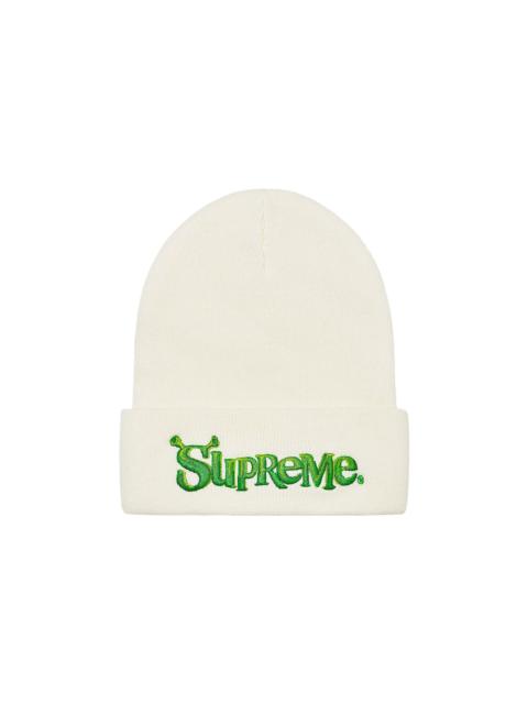 The nametag logo on the front of this Supreme beanie was designed by influential skater and artist Mark Gonzales. Knitted in brown, the cuffed hat released during the FW21 season.