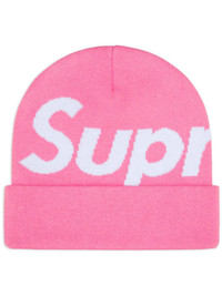 intarsia-logo beanie hat Highlights - Bubblegum pink - Pull-on style - Turn-up brim Imported Composition Fabric 100%