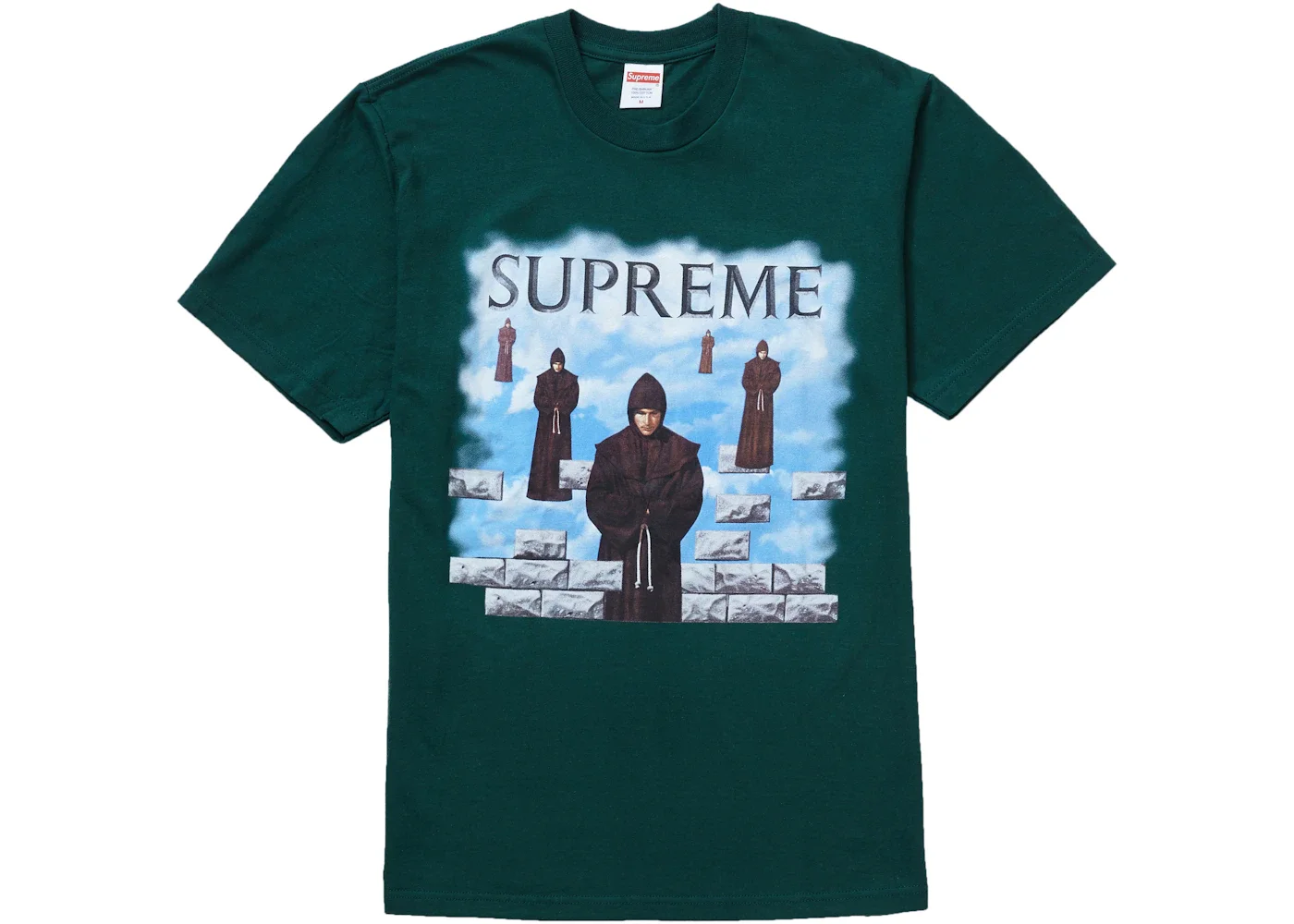 Supreme's Levitation Tee released as a part of their FW19 Week One drop and contains one of the most interesting references of the entire drop. The graphic, which appears to be several monks floating under the word Supreme, was inspired by an album cover that is very similar. The album is called "Chants" and was written by Benedictine Monks of Santo Domingo de Silos. The tees featuring the graphics were released in seven different colors. The Supreme Levitation Tee was released on August 22nd, 2019 and retailed for $38 USD. - Season FW19 - Color Dark Green - Release Date 2019-08-22 - Retail Price 38 - Featured false
