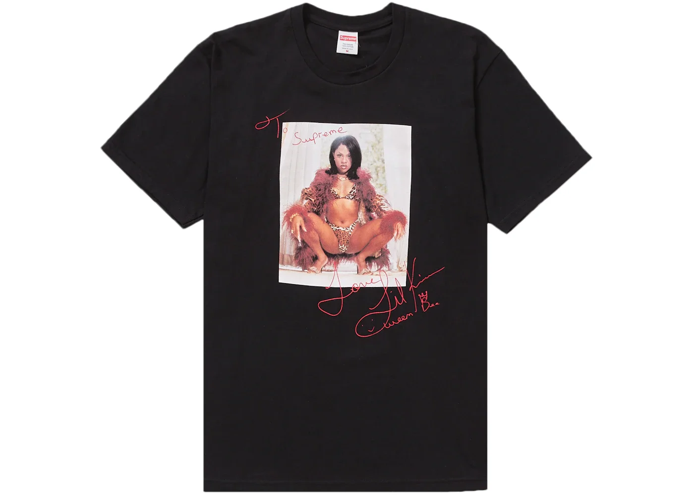 Supreme released this black Supreme Lil Kim T-shirt as a part of their Spring/Summer 2022 Spring Tees release in Week 8 of the season. This t-shirt features a signed graphic of the artist on its chest. In terms of materials, this Supreme T-shirt is made with the brand's classic 100% cotton material. This Supreme Lil Kim T-shirt was released at the retail price of $48 on April 14th, 2022. - Season SS22 - Color Black - Release Date 2022-04-14 - Retail Price 48 - Featured false