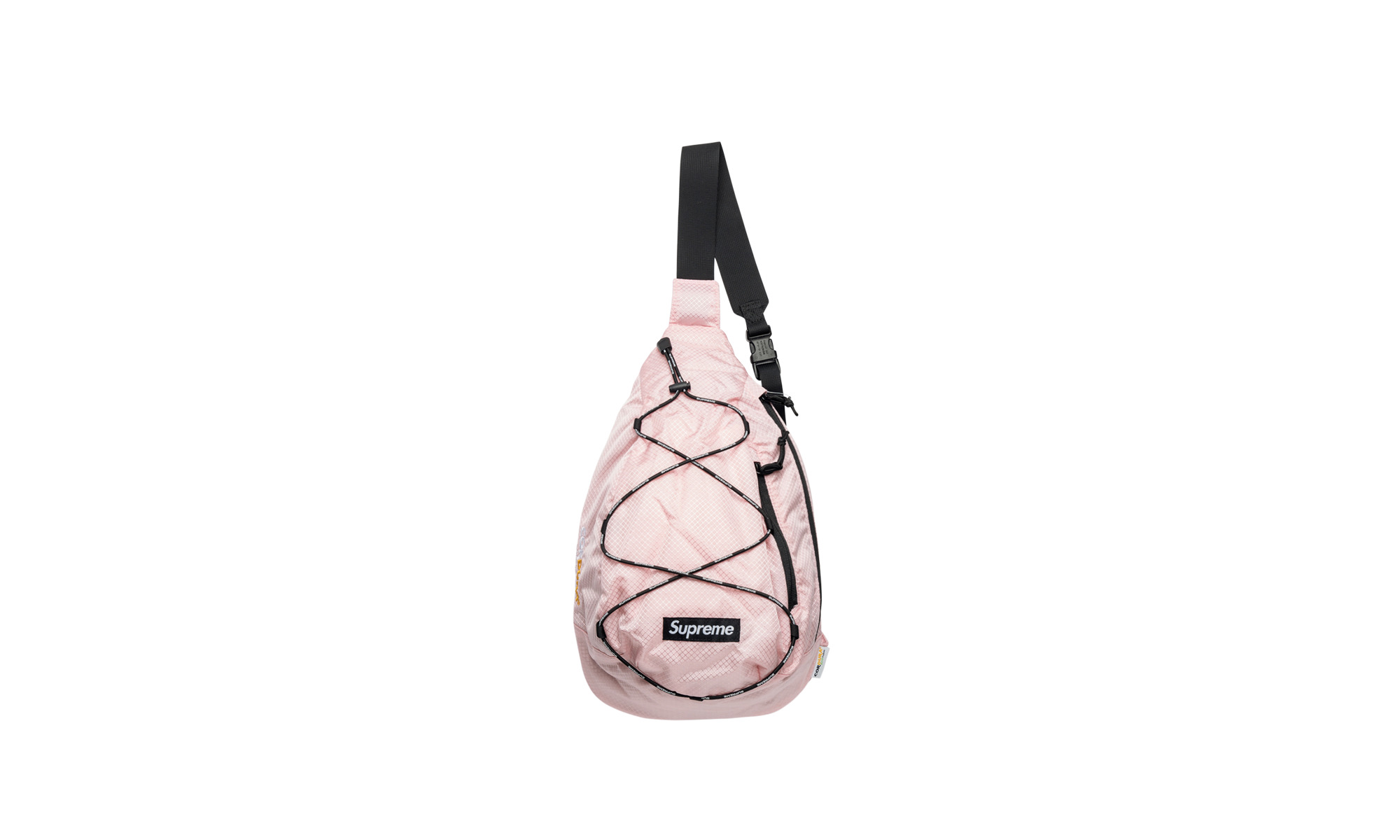The Supreme Sling Bag “Pink” is a utilitarian accessory from the “World Famous” streetwear brand’s Spring/Summer 2022 collection. The Supreme Sling Bag is made from a water-resistant 210D Cordura nylon material. It features a main zip compartment with interior elastic mesh pockets. There is also a front zip pocket and a side mesh pocket with a Supreme-branded shock cord. Supreme’s iconic Box Logo appears on the outside of the bag. This version features a pink body with black accents.