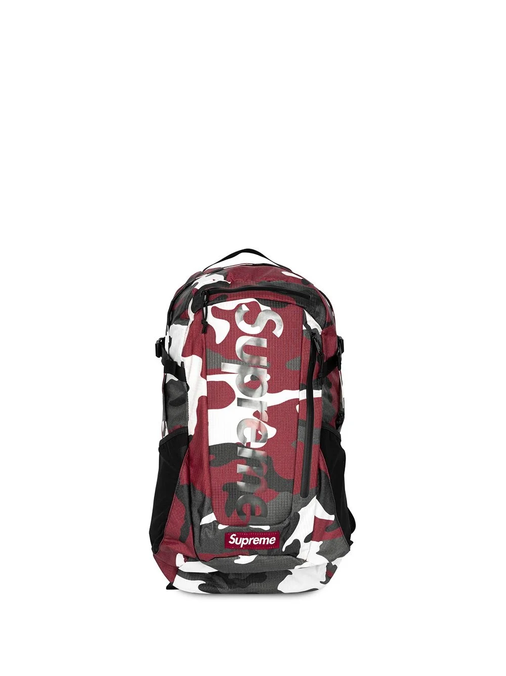 camouflage-print backpack A February SS21 release, the Supreme logo-print backpack is presented here in a Red Camo colourway. The brand's commitment to quality is shown in the craftsmanship of this piece. Made in United States Composition Outer: Polyester 100% Lining: Fabric 100%