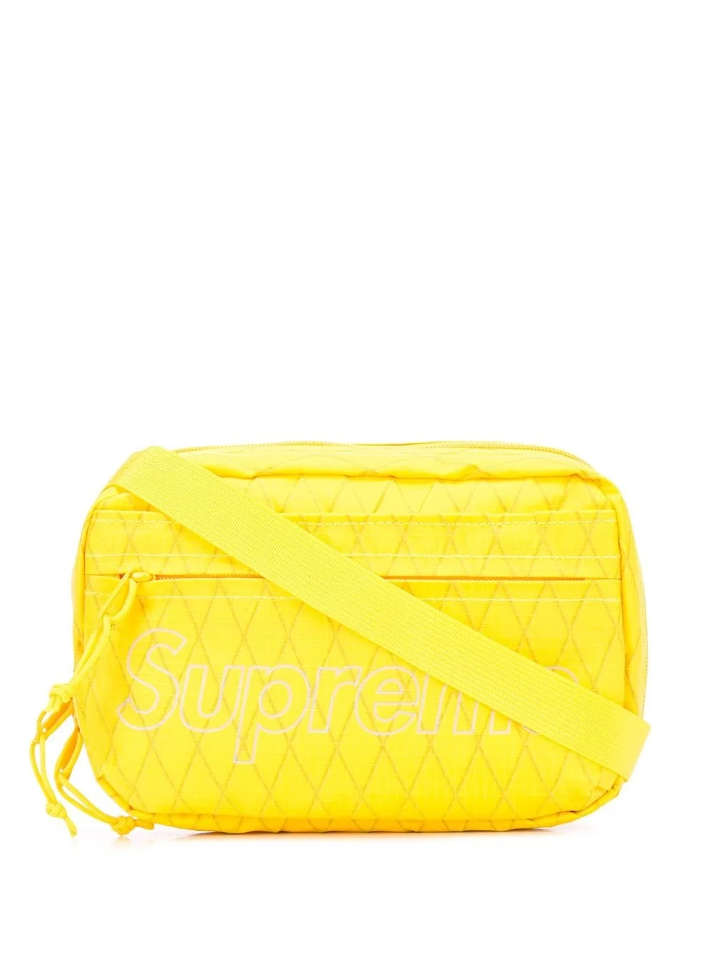 logo-print shoulder bag Update your day-to-day style this season with this yellow logo print shoulder bag from supreme featuring an adjustable shoulder strap, a zip fastening and a zigzag pattern. Imported Composition Outer: Polyester 100% SIZE & FIT Model measurements Height 6 ft 1 in(1.85 m) Bust/Chest 39.76 in(101 cm) Hips 36.61 in(93 cm) Waist 27.95 in(71 cm) Measurement DEPTH 2.36 in(6 cm) HEIGHT 6.69 in(17 cm) WIDTH 9.44 in(24 cm)