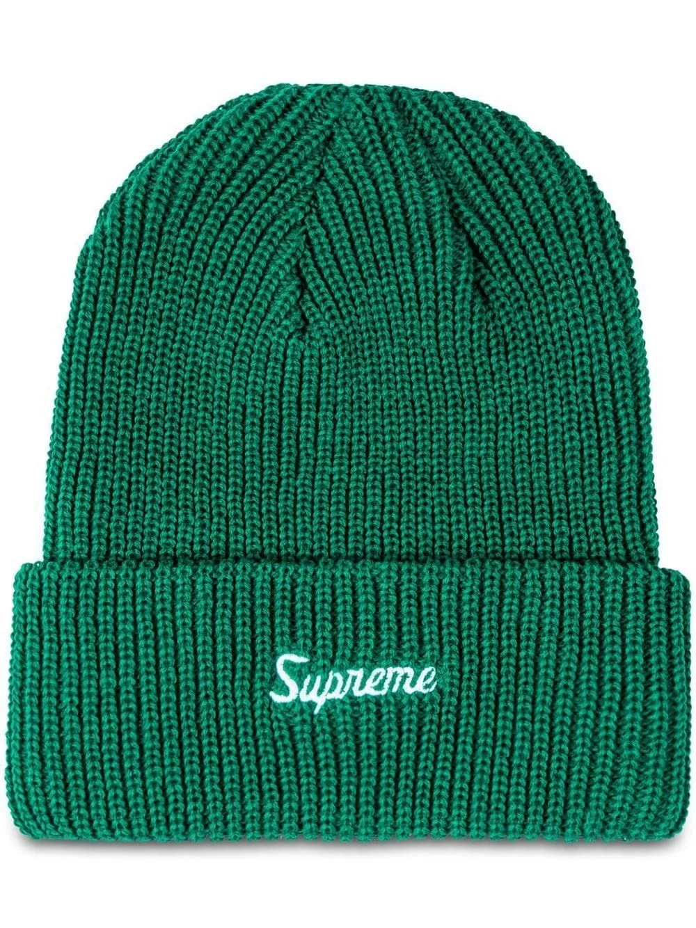 loose gauge beanie Supreme's knit loose gauge beanie keeps coming back season after season, with distinct colours and motifs. Here, the accessory arrives in a dark green hue and comes with an embroidered logo on the front. Imported Composition Acrylic 100%