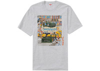 The Supreme Manhattan Tee Ash Grey has a colorful cartoon graphic of a Manhattan street print on the chest. The print is signed by the artwork designer, @Red Grooms. On the back of the tee is a red Supreme Manhattan logo. The word Manhattan has a blue mirror image beneath it. The ash grey t-shirt has a crew neck. It also has red Supreme branding on the neck. It has free-moving, open sleeves. The Ash Grey Supreme Manhattan Tee Ash Grey debuted on 30 June 2022. It retailed for $40. - Season SS22 - Color Ash Grey - Release Date 2022-06-30 - Retail Price 40 - Featured false