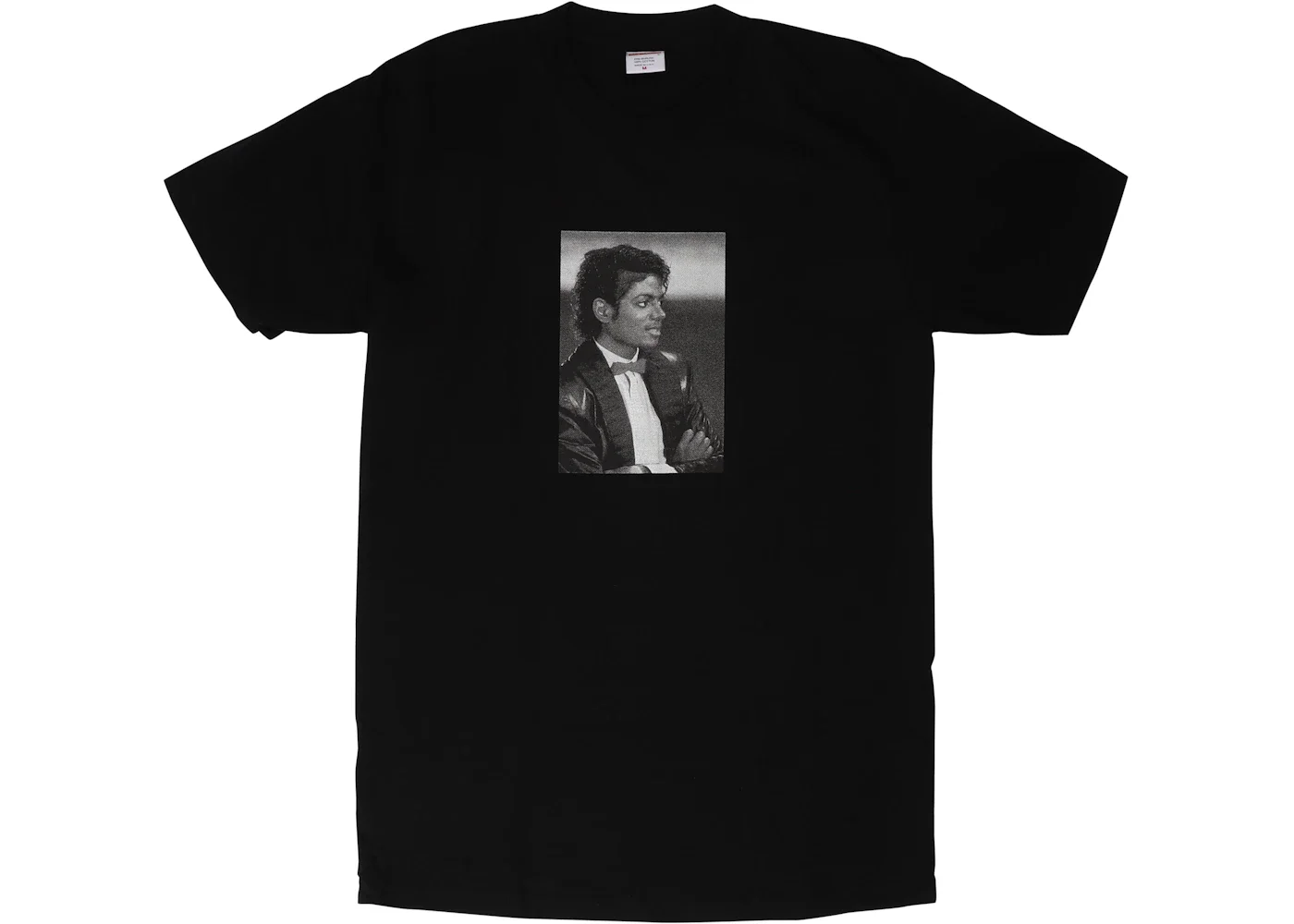 Part of the Fall/Winter 2017 collection, the Supreme Michael Jackson Tee in Black epitomizes a classic all-cotton Supreme shirt, showcasing a printed image of Michael Jackson on the front and a printed logo on the back. Fashioned from premium cotton, the Supreme Michael Jackson Tee Black spotlights an iconic portrayal of the King of Pop from his famed "Billie Jean" video, a compelling tribute to the legendary pop icon. Against the black canvas, the grayscale graphic stands out vividly, intensified by the stark contrasts that elevate the artwork's impact. Featuring the iconic Supreme box logo on the back, the tee boasts short sleeves, a ribbed crew neck, and a regular fit, delivering a timeless silhouette ideal for everyday wear. The defining element of the Supreme Michael Jackson Tee in Black revolves around the captivating image of the King of Pop from his iconic "Billie Jean" video. This focal point not only enriches its visual charm but also establishes it as a sought-after collectible for devoted fans of the legendary artist. The tee debuted for $44 on the 25th of May 2017. - Season SS17 - Color Black - Retail Price 44 - Featured false