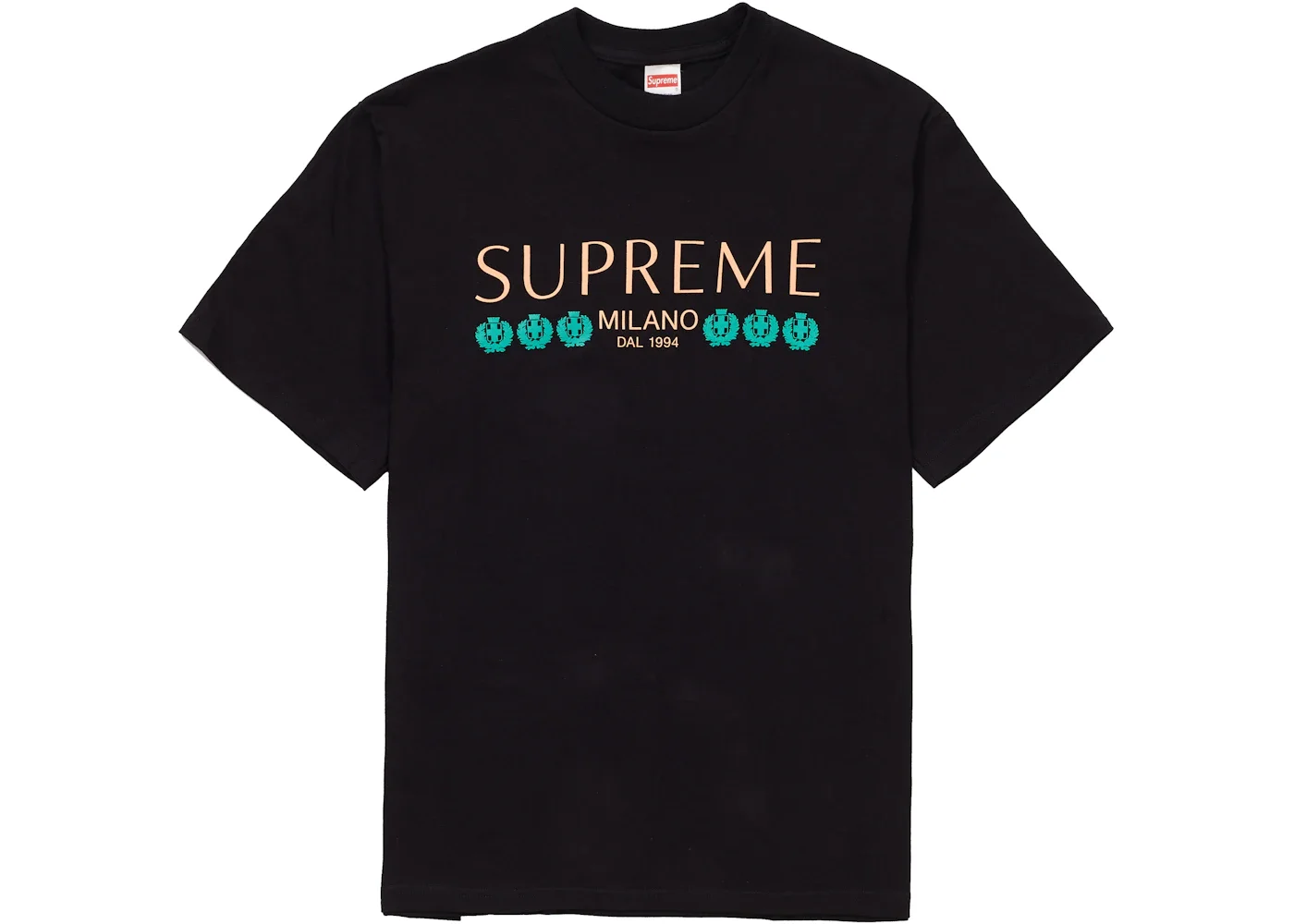 This Supreme Milano T-shirt was released in June of 2021 as a part of Spring/Summer 2021's Summer Tees delivery. The T-shirt features a large Supreme Logo above the word Milano and the year that the brand was founded. This t-shirt was released alongside six other t-shirts including a KAWS Chalk Logo T-shirt and an Augustus Pablo T-shirt. The Supreme Milano T-shirt in black was made available at the retail price of $38 on June 24th, 2021. - Season SS21 - Color Black - Release Date 2021-06-24 - Retail Price 38 - Featured false